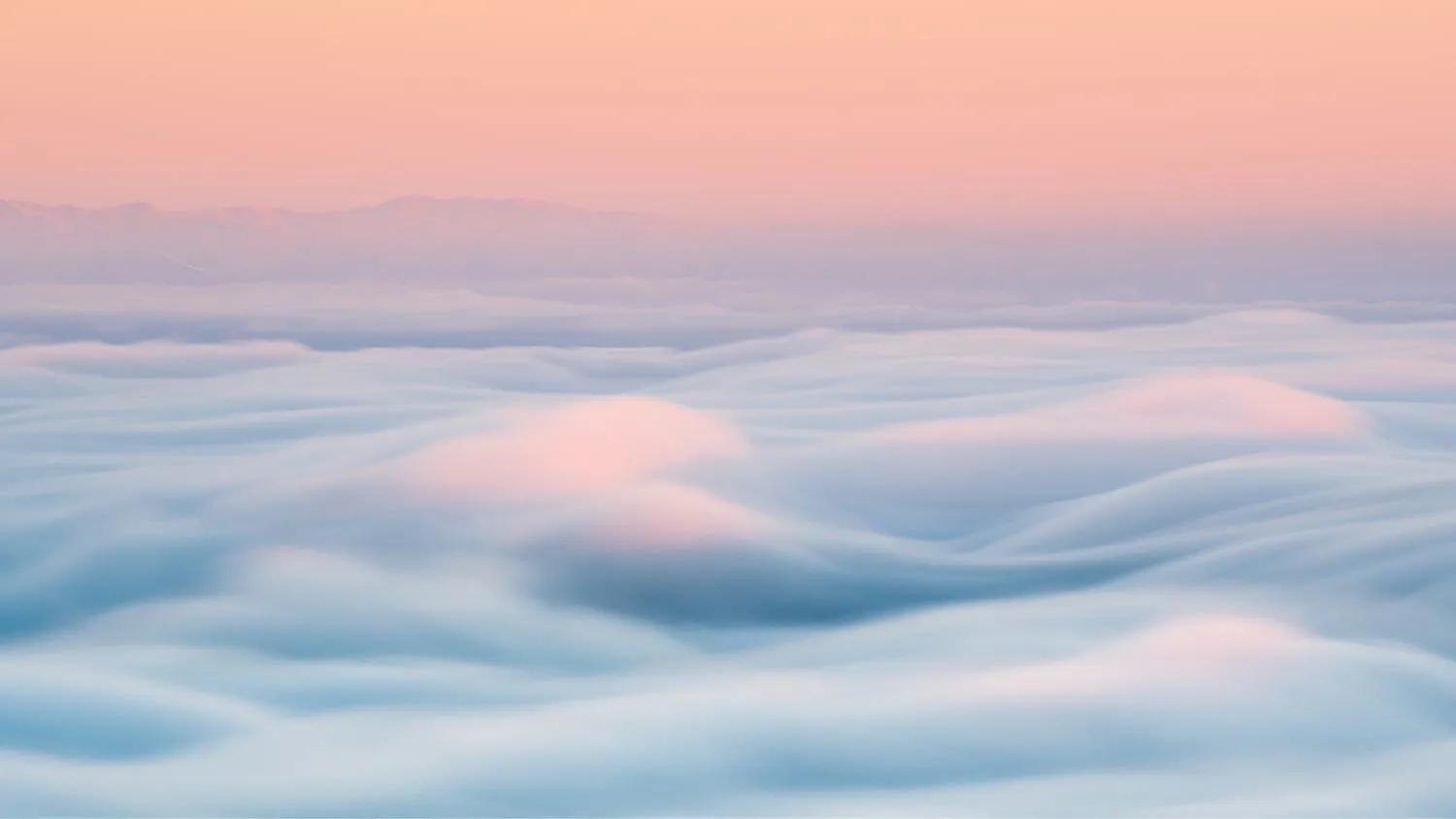 3.朝阳从云间拱出来,霞光无声蔓延,翻腾的云海似乎就在脚下。